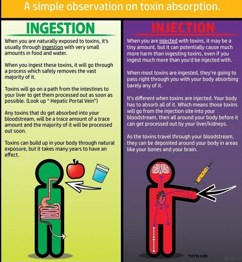 No Digestive or Liver Filtering: Injected substances do not go through the stomach, intestines, or liver first. This means toxins like aluminum, mercury (thimerosal), polysorbate 80, and formaldehyde enter the body in a way that prevents natural detoxification mechanisms from neutralizing them.