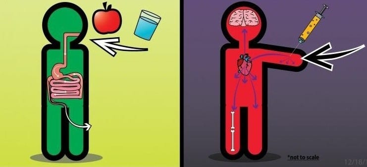 When discussing vaccine safety, a common argument is that certain vaccine ingredients, such as aluminum, are "safe" because we ingest them in food and water regularly. However, this argument overlooks a critical distinction: the body processes substances very differently depending on whether they are ingested or injected. Understanding this fundamental difference should make any parent or individual think twice about what is being injected directly into their or their children's bodies.